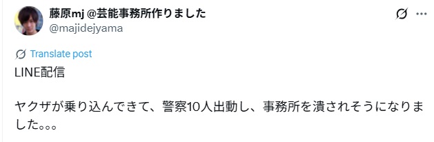 ■ 藤原徹・芸能事務所MJ strategy社長は暴力団とズブズブの関係