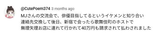 上記にあるように、『令和の虎Youth』コメントには、実際の被害者女性のコメントが数件上げられています。